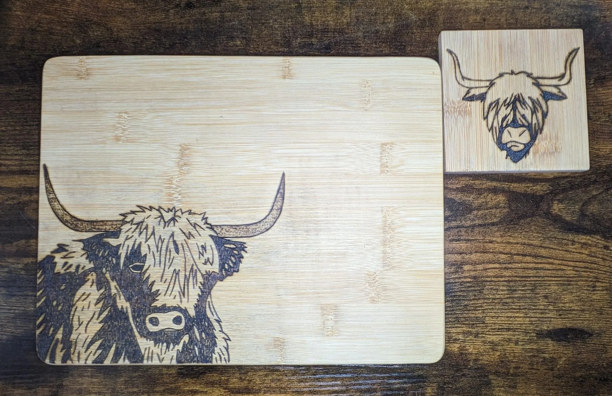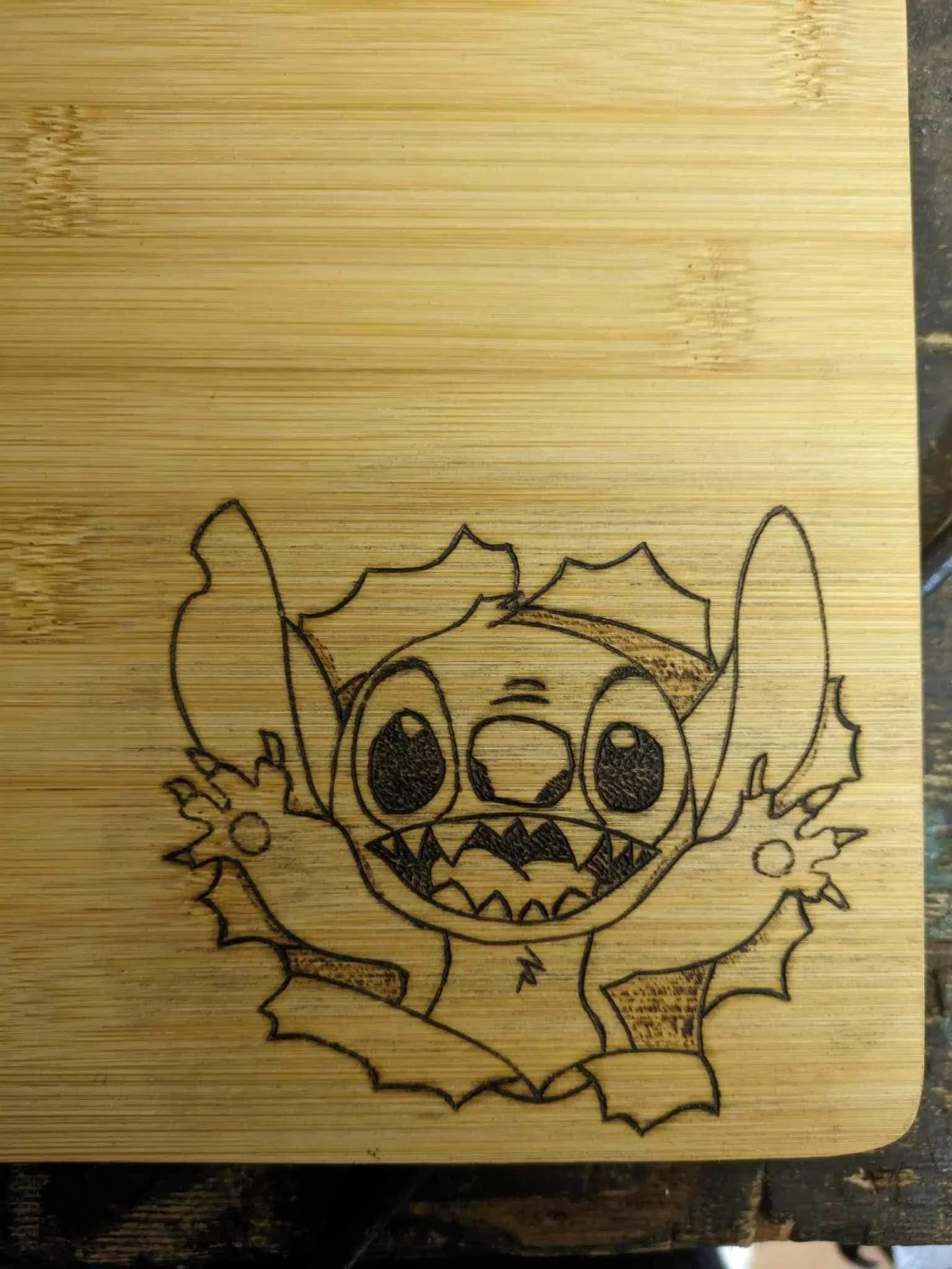 Store Custom Piece from £10.00 Bagpipes from £15.00 The Snuggly Duckling £50.00 Boba Fett £50.00 Concerning Hobbit £30.00 Golden Retriever £25.00 The Amazing Spider-Man from £50.00 Stitch Chopping Board £15.00 Highland Cow from £20.00